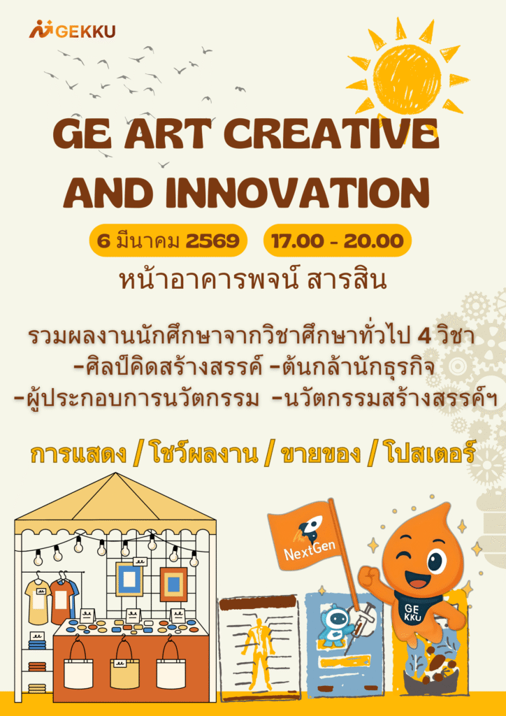 meet GE Core Team รายวิชาใน 5 แก่นการเรียนรู้ เพื่อพัฒนาบัณฑิต แก่นที่ 1 แก่นการพัฒนาการสื่อสารในระดับสากล (Core of Global Communication Development) แก่นที่ 2 แก่นการพัฒนาความสามารถทางเทคโนโลยี (Core of Technological Fluency Development) แก่นที่ 3 แก่นการพัฒนาปัญญาและนวัตกรรม (Core of Cognitive and Innovation Development) แก่นที่ 4 แก่นการพัฒนาภาวะผู้นำและปฏิสัมพันธ์ (Core of Leadership and Interpersonal Development) แก่นที่ 5 แก่นการพัฒนาศักยภาพและการกำกับตนเอง (Core of Self-Potential and Self-Regulation Development) ข้อมูลการเปิดสอนรายวิชา ภาคการศึกษาปลาย ปีการศึกษา 2568 ภาคการศึกษาต้น ปีการศึกษา 2568 ข่าวและบทความ 2 March 2569 เปิดพื้นที่ปล่อยของ! GE มข. ชวนช้อป ชม โชว์ ในงาน “GE Art Creative and Innovation” 6 มี.ค. นี้ ที่อาคารพจน์ สารสิน 17 February 2569 สถาบันการสอนวิชาศึกษาทั่วไป มข. เดินสายพบคณะ ชี้แจงหมวดวิชาศึกษาทั่วไป ฉบับปรับปรุง พ.ศ. 2568 29 January 2569 ไม่ต้องเขียนโค้ดก็สร้างแอปได้! ด้วย “AppSheet” 27 January 2569 GE KKU จัด Workshop เปลี่ยนข้อมูลให้เป็น Dashboard ในพริบตา ด้วย “Looker Studio” 19 January 2569 GE KKU จัดเต็ม! ปลดล็อกสกิล Canva AI ให้งานพรีเซนต์ปังกว่าเดิม! 17 November 2568 ศึกษาทั่วไป จัดสัมมนา “พลิกโฉม GE KKU” เปิดตัวกรอบสมรรถนะ 5 แก่นการเรียนรู้ เตรียมบัณฑิตสู่อนาคต Our Collaborative Partners Post Views: 0