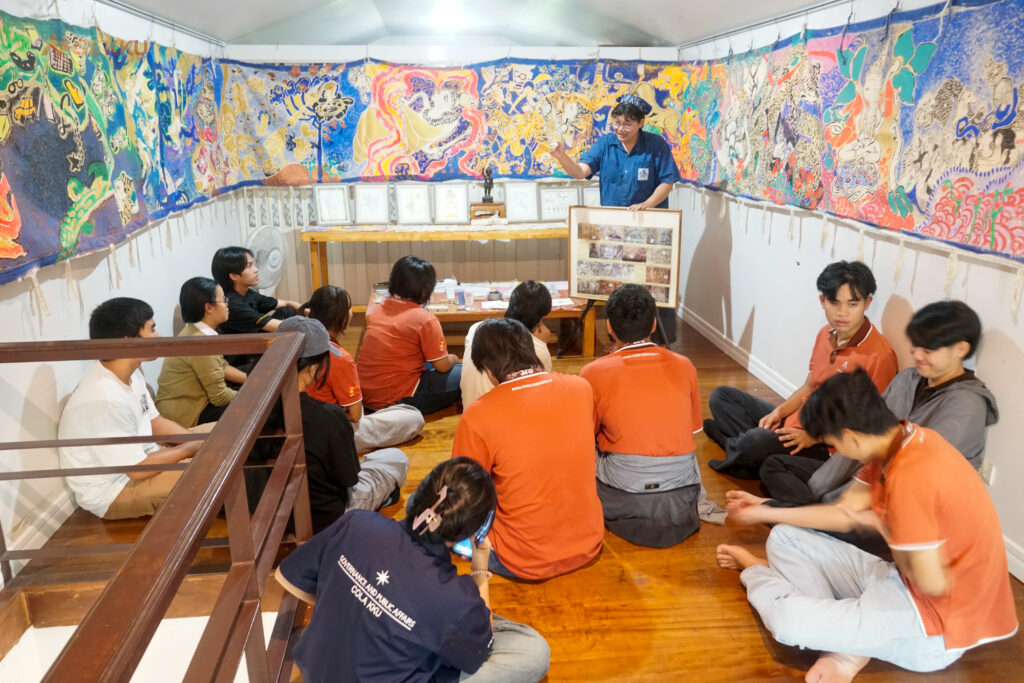 เมื่อตลอดเดือนกรกฎาคม – กันยายน 2568 ณ โฮงสินไซ บ้านหนองกุง สถาบันการสอนวิชาศึกษาทั่วไป มหาวิทยาลัยขอนแก่น ได้จัดกิจกรรมการอบรมเชิงปฏิบัติการ “ภูมิปัญญาท้องถิ่น กรณีศึกษา โฮงสินไซ” สำหรับนักศึกษาที่ลงทะเบียนเรียนรายวิชา GE141153 ภูมิปัญญาท้องถิ่น เพื่อพัฒนาทักษะการเรียนรู้และแนวทางการบูรณาการภูมิปัญญาท้องถิ่นเข้ากับการเรียนการสอน โดยเน้นการเรียนรู้จากประสบการณ์จริงและการสัมผัสภูมิปัญญาอย่างใกล้ชิด