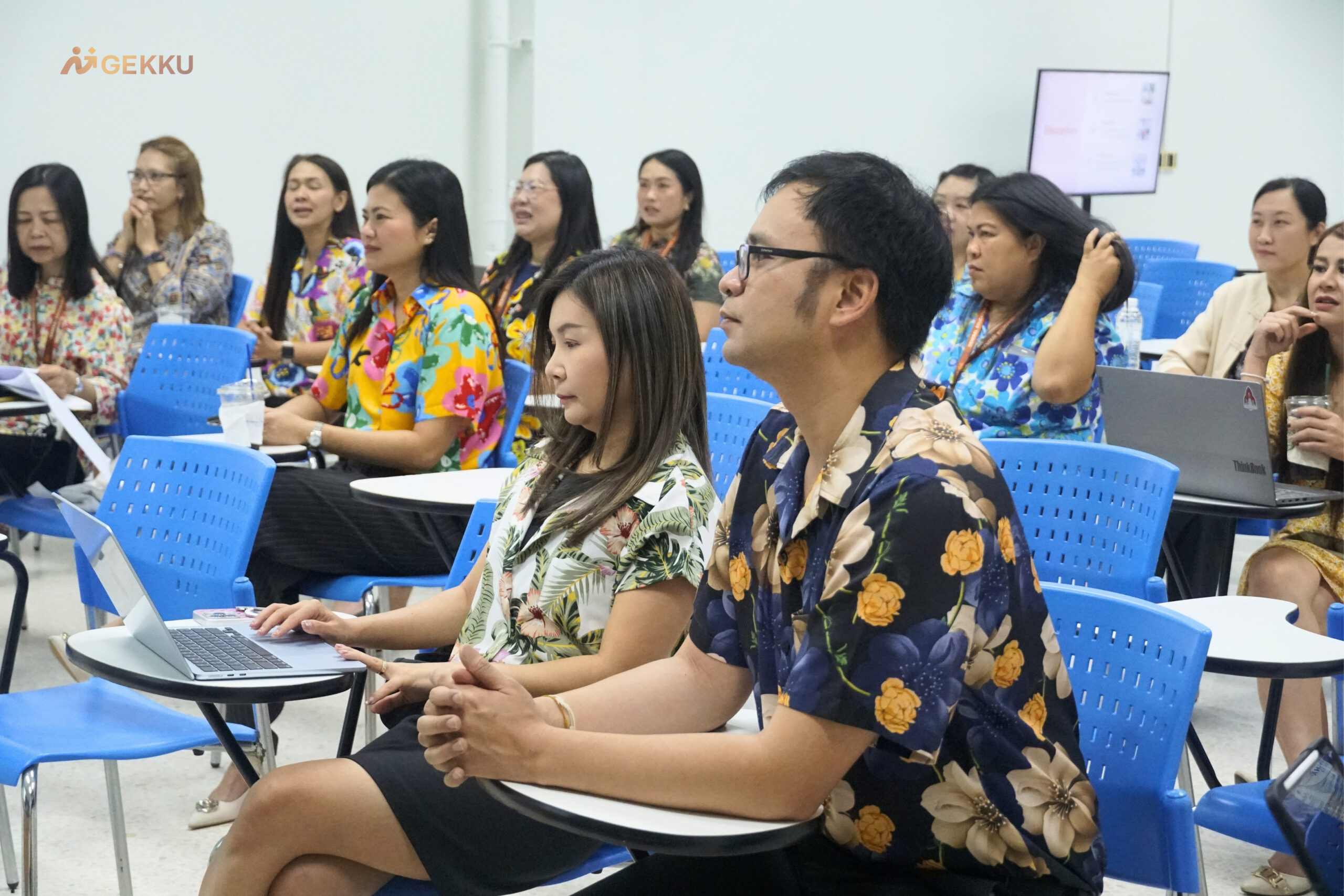 ตามด้วยกิจกรรมหลักคือการแบ่งปันความรู้เกี่ยวกับการนำเทคโนโลยี AI มาใช้ในการทำงาน โดยมีวิทยากร 2 ท่าน ได้แก่ อาจารย์ ดร.ศันสนีย์ ชุมพลบัญชร บรรยายเรื่อง “การใช้ AI กับการจัดการเรียนการสอน” นำเสนอแนวทางการประยุกต์ใช้ปัญญาประดิษฐ์เพื่อพัฒนาคุณภาพการเรียนการสอนให้มีประสิทธิภาพมากยิ่งขึ้น และนายจิรวัฒน์ ศรีสว่างวงศ์ บรรยายเรื่อง “การใช้ AI กับการทำสื่อประชาสัมพันธ์” แนะนำเทคนิคการสร้างสื่อประชาสัมพันธ์ที่ทันสมัยและน่าสนใจด้วยเครื่องมือ AI