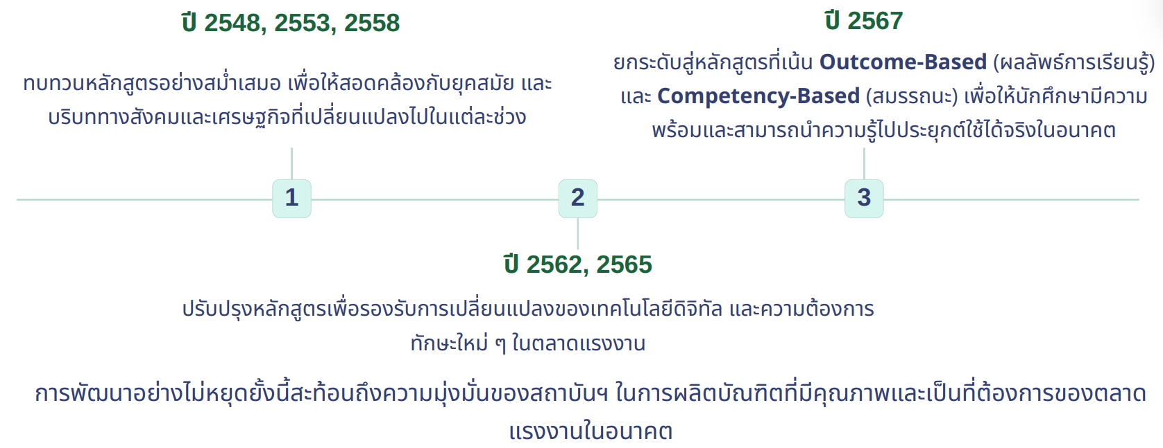 หลักสูตรของเราได้รับการออกแบบมาเพื่อติดอาวุธทางปัญญาและทักษะที่จำเป็น เพื่อให้นักศึกษาสามารถปรับตัวและประสบความสำเร็จในสังคมที่มีการเปลี่ยนแปลงอย่างรวดเร็ว